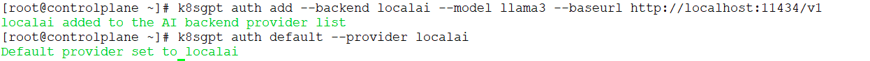 We will use the Ollama REST API as the backend for k8sgpt, serving as the inference provider. Here, we select the backend type as localai because LocalAI is compatible with the OpenAI API, and the actual provider will still be Ollama running Llama.